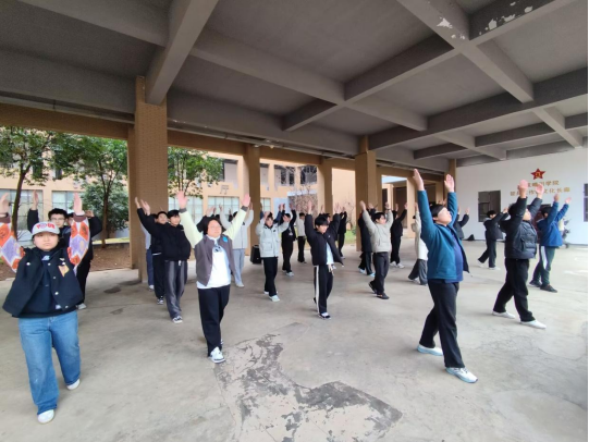 当天下着小雨,但同学们的热情不减。当轻快的音乐奏响,选手们迅速进入状态,有力地挥舞手臂,在空中划出优美的弧线;轻盈地跳跃,将青春的动感与朝气展现得淋漓尽致。
