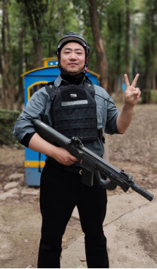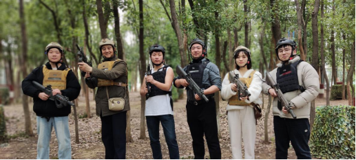 真人CS战场上,老师们分成两队,展开了一场激烈的“战斗”。大家分工明确,配合默契,有的负责冲锋陷阵,有的负责掩护队友,有的负责偷袭敌人。战场上硝烟弥漫,枪声四起,老师们玩得不亦乐乎,仿佛回到了童年时代。
