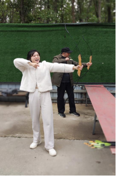射箭场上,老师们屏气凝神,拉弓搭箭,瞄准靶心,动作一气呵成。一支支箭矢破空而出,有的正中靶心,赢得阵阵喝彩;有的虽未命中,但也展现了老师们积极向上的精神风貌。