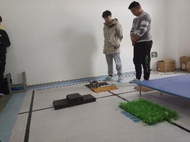 伴随着电机的启动声,本次比赛在轻松活跃的氛围中开始了,大赛共有13组队伍,各组队员团结协作,依次将设计调试好的机器人放在比赛场地上进行比赛