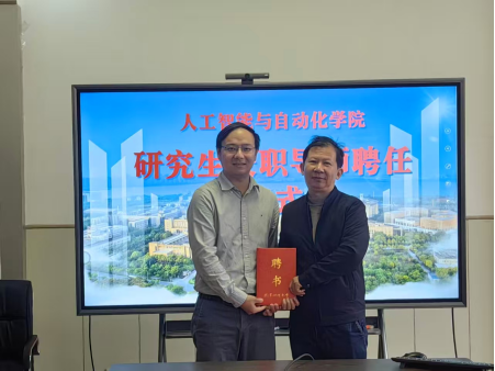 会上明确了双方导师在研究生课程指导、课题研究、论文答辩等环节的职责,并举行了联培导师正式聘用仪式。陈院长为朱纯兵、饶超平两位导师颁发了聘用证书。