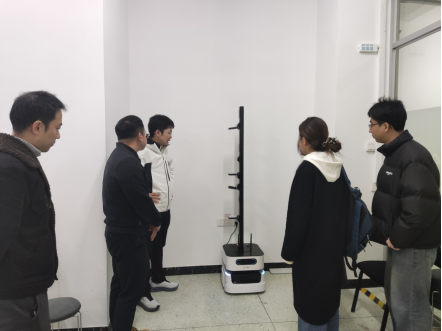 随后,众人一同参观了四方继保自主研发的变电站巡检机器人。该机器人作为湖北地区试点应用设备,具备智能化检测继电保护柜运行状态的核心功能,能够精准识别设备参数、故障隐患等关键信息,充分展现了电力行业智能化发展的前沿趋势。参观过程中,企业导师周全详细讲解了机器人的技术原理、应用场景及实践价值,让调研团队对电力行业智能化升级