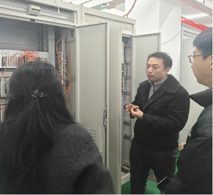 座谈结束后,调研团队先后参观了学生入职培训现场与考核场地,实地了解了培训课程设置、实操训练安排及考核评价标准。周全老师向师生展示了设备实操,介绍了现场实操与教材理论学习的鸿沟和差异,表示学校在课程设置时可以充分发挥产教融合作用,将企业需求课程提前在课程中植入,同时周老师还重点强调了学生到企业后的学习能力和职业素养的重要性,要有对专业、对岗位的热爱和敬业精神,主动思考、积极钻研,摒弃“学不会,老师兜底”心态,对自己负全责。