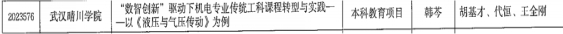 我院教师主持的课题:“数智创新”驱动下机电专业传统工科课程转型与实践——以《液压与气压传动》为例(2023576)获批湖北省教学改革项目。