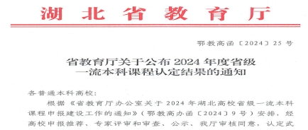 2.学院再获湖北省一流本科课程一门,现共有四门省级一流本科课程。