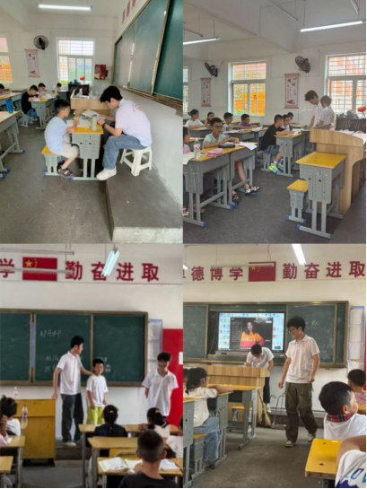 接着,“鲁班星火”志愿服务团构建分年级分层教育体系:宋欣然、邹子豪老师携手一二年级萌娃,用童趣方式传递安全知识;胡志豪、郑宗邦老师陪伴三四年级学生,结合成长特点深化安全认知;姬冉冉、陈煊老师带领五年级学子,聚焦安全与学业衔接,拓宽教育维度,聚焦防溺水、交通安全、居家安全 等重点,老师们用案例剖析、情景模拟传递“保命知识”: