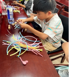 在手工课上,肖依凡老师为孩子们带来扭扭棒手工制作,带领孩子们在玩中学,激发孩子们的兴趣,提高动手能力和培养创新思维。孩子们每个人都能融入其中,动手实践,动脑想象。他们做的小花、戒指、法棒、桌椅板凳等,都栩栩如生,活灵活现,为他们枯燥的暑期生活添上了靓丽的一笔。