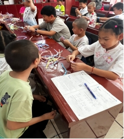 同学们心灵手巧,志愿者们由衷地感叹“孩子们的动手能力确实很强!”孩子们拉扯着小老师们欣赏自己的作品,邀之与自己切磋棋艺,教学相长,寓教于乐,活动室里充满欢声笑语。