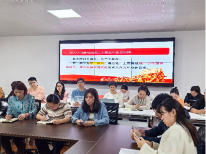 为深入持续学习贯彻党的二十届三中全会精神,践行习近平总书记重要指示,强化党员使命担当,教工党支部纪检委员黄文慧同志带领全体党员深入学习了党的二十届三中全会精神、习近平总书记的重要文章《大力弘扬伟大爱国主义精神,把强国建设、民族复兴伟业不断推向前进》以及习近平总书记在安徽考察时的重要讲话精神等。