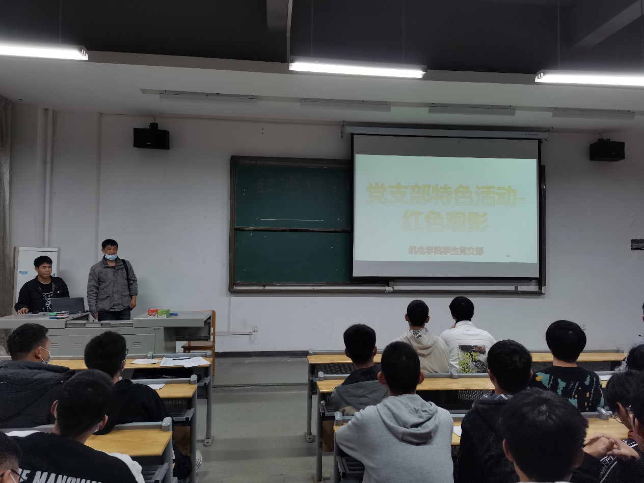 为贯彻落实好党的教育政策,加强我院思想政治红色文化工作的开展,接受革命传统教育,坚定革命信念,树立务实奉献的作风。在我院党支部的领导下,11月14日18:00在教一101教室开展了红色观影活动。本次活动由机电学院党支部书记周培荣老师主持,组织学生党员和发展对象观看电影《金刚川》。