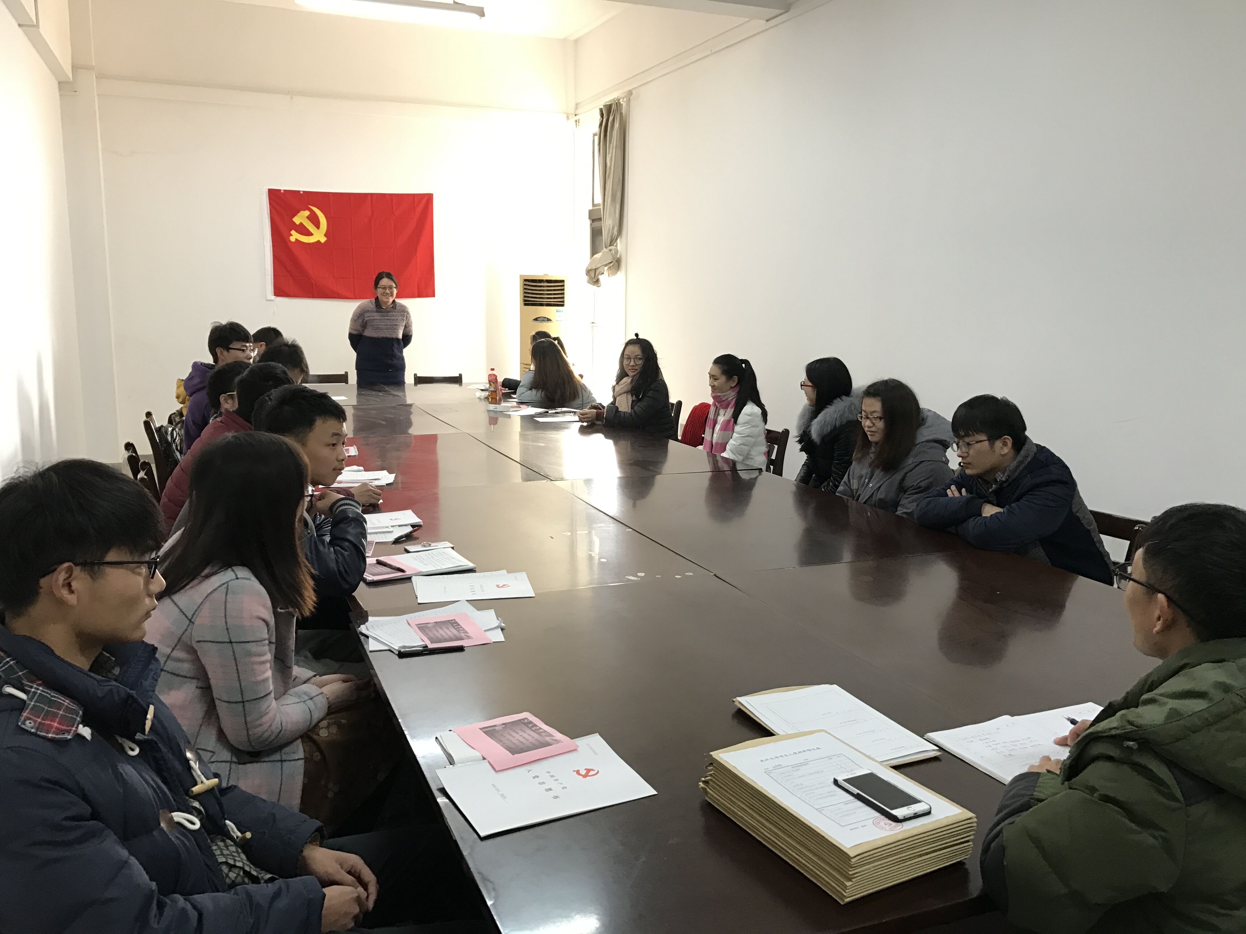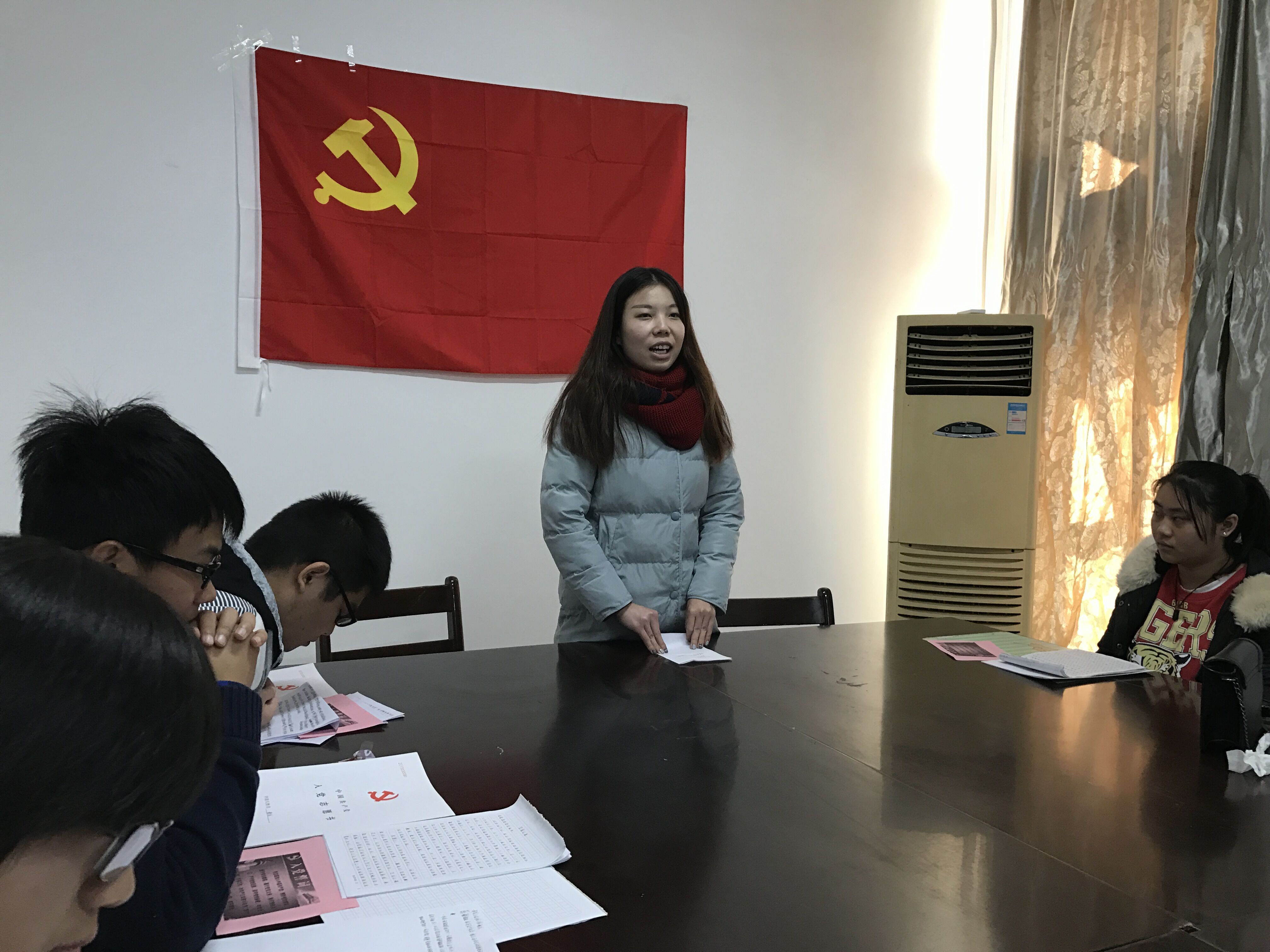 首先,由左登、张庆武、彭弦、喻定标等共15位预备党员分别进行发言,归纳总结在预备期间个人的收获及目前自身仍然存在的各种问题。发言后,7名正式党员举手表决,最后15位预备党员获得全票通过,成为正式中国共产党员。
