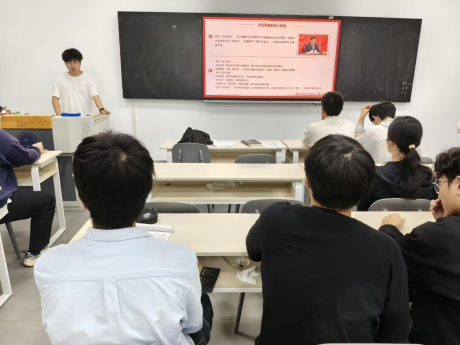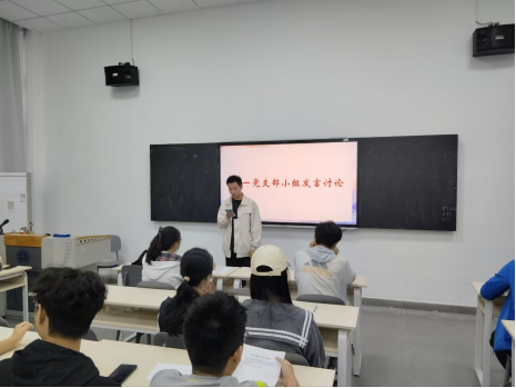 活动开始,周培荣老师带领大家剖析本次讨论课主题,从阅兵精神切入,具体感受党员的初心坚守在哪些方面?再聚焦于自身,让同学们认真学习阅兵精神,从阅兵精神中学习对党忠诚的信念,为人民服务的宗旨,做到“绝对忠诚、铭记历史、能打胜仗、和平发展”,并将此作为检视初心、淬炼党性的镜子,不断增强“四个意识”、坚定“四个自信”、做到“两个维护”,并将阅兵精神融入“专注听课、精于研究、不断创新”的具体行动,严于律己,发挥先锋模范作用。