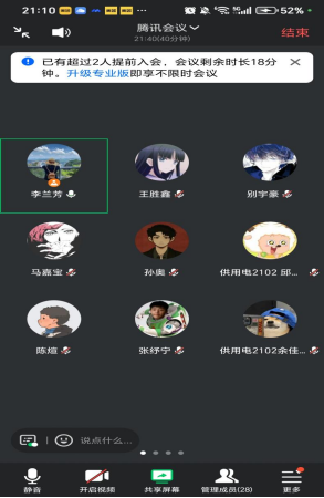 2025 年4月27日晚21:00,电气2101班全体同学于线上开展了本期班会。李兰芳老师在班会上强调了以下事项: