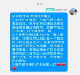 2.今年英语校线是350分,请大家核查,如果没有达到的看一下自己的平均分是否过70,所有同学的成绩单已经发在大群里,可搜索关键词查看。需要成绩单打印并且盖章的可到九栋学生一站式服务中心进行办理,每个学生有一次免费打印的机会。