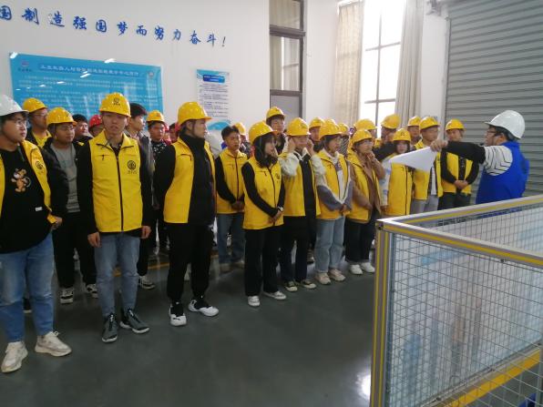 参观活动开始前,王老师首先在实训室的教室讲述了有关机器人专业课的学习内容,让同学们对今后的学习任务做了初步的了解。同时着重强调了实训室的安全问题,如进实验区要穿着工作服与佩戴安全帽,以及对安全帽的颜色,做了详细的说明。王老师再三要求,新生从入学开始就要树立安全意识,严格遵守操作规范,养成良好的实验习惯,同时向同学们扩展了在现实生活中一些企业出现的安全问题以及造成的相关危害,让同学们身临其境的感受到安全的重要性。