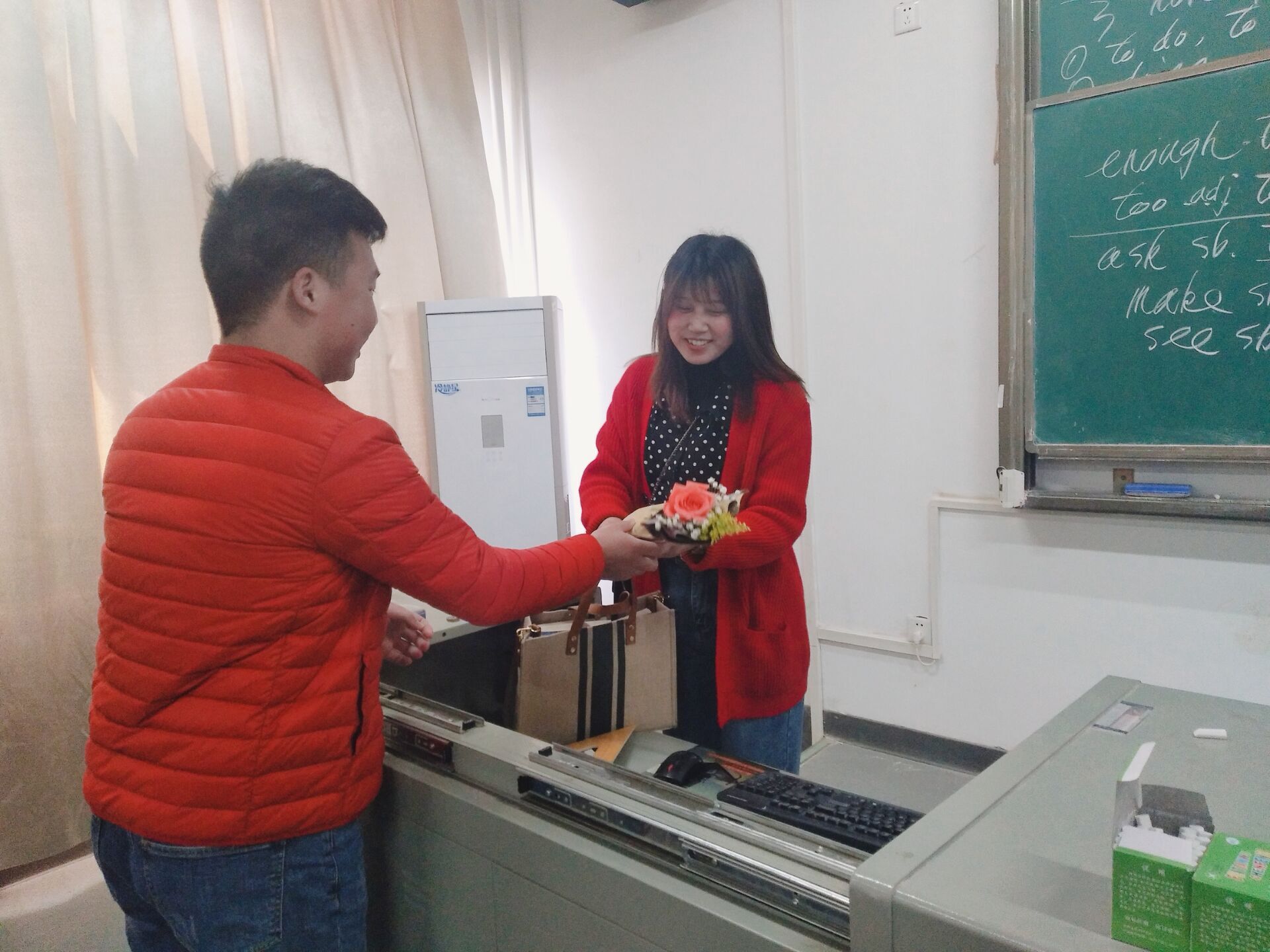 上课的前几分钟,每个班级的负责人在教室外紧张不已,他们选择了把花抱在胸前的方式,亲手为电气工程学院每个女生送上女生节的惊喜花束,每个女生脸上都泛起了甜甜的微笑,就像吃了棉花糖的孩子那般笑的天真可爱。最后,女生一起将花送给了他们所有人都尊敬的可爱的女神-任课老师。任课老师比任何人都惊讶,时隔多年再次收到女生节礼物也是一件极其暖心的事情。