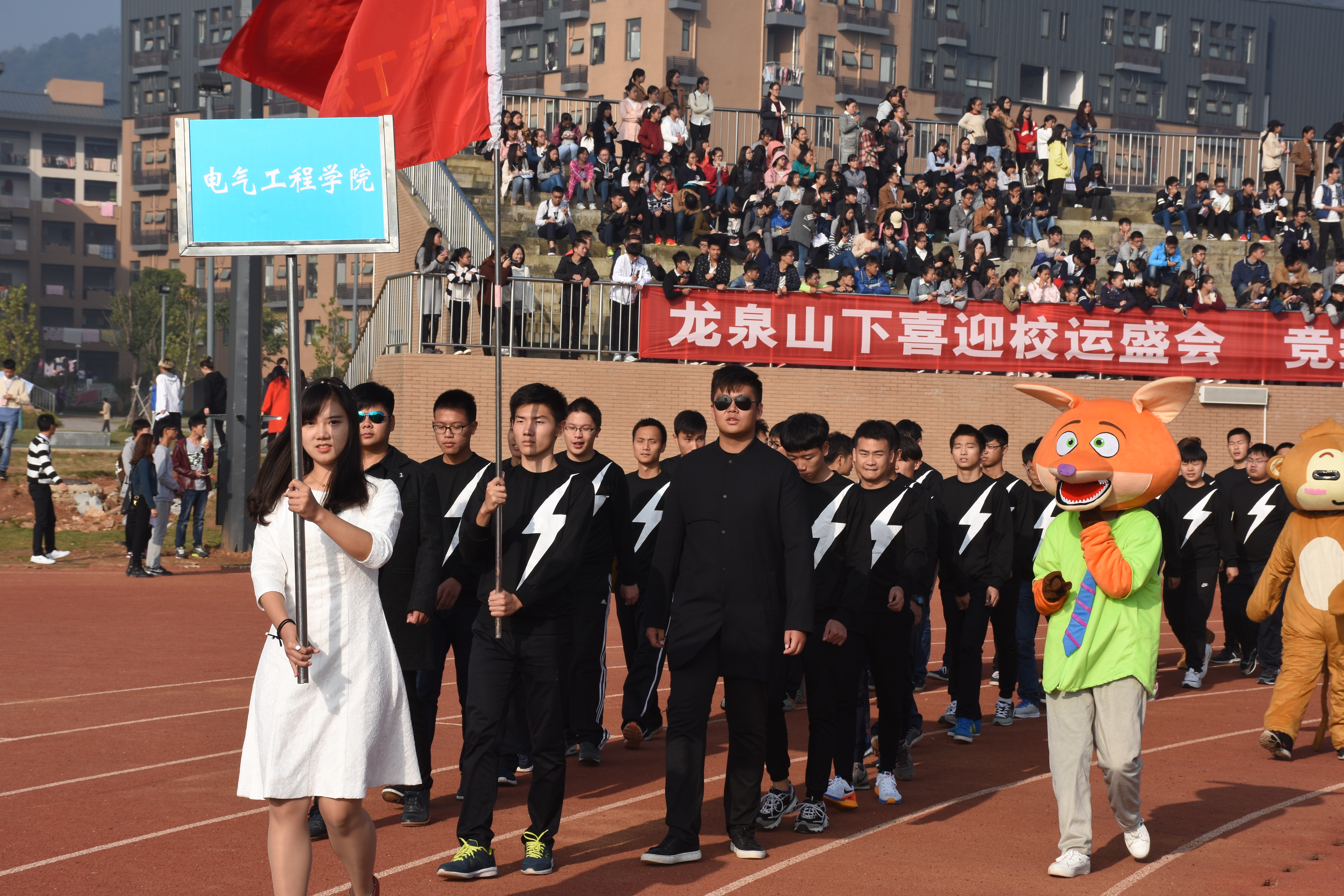 11月4号清晨,开幕式还未开始之前,我院学生会成员便到达了会场将我院的集合点布置完成,同样提早到达的方队成员则是进行着最后的排练,将表演过程中需要注意的地方反复演练,力求将我院的方阵表演完美地呈现给全校。在随后的开幕式上,我院方队英姿飒爽,气宇轩昂,“电气雄风,气贯长虹”的号声嘹亮,表演的泰拳更是威风凛凛,震撼全场,将我们电气工程学院的刚阳之风展现得淋漓尽致。