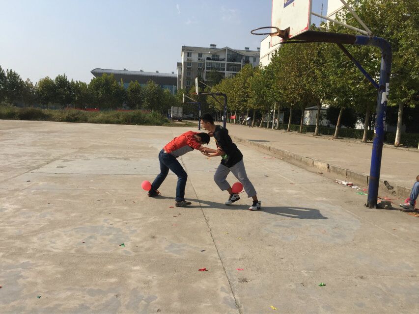 在第一个项目 “踩气球”中,尽管文艺部女生多,却也在这个项目中展现出巾帼不让须眉的气概,最后和体育部并列第一。然后是“爱的抱抱”,所有参赛选手围成一个圈,在主持人报出数字后,纷纷拉住周围的人,抱成一团,淘汰掉没有及时抱在一起的人。接下来是考验协调合作的“绑腿行军”项目,在消耗了同学们大量体力的同时也点燃了大家的如火热情。最后是比拼团队与力量的比赛——拔河,比赛中体育部与外联部以压倒性的力量获得最终胜利。