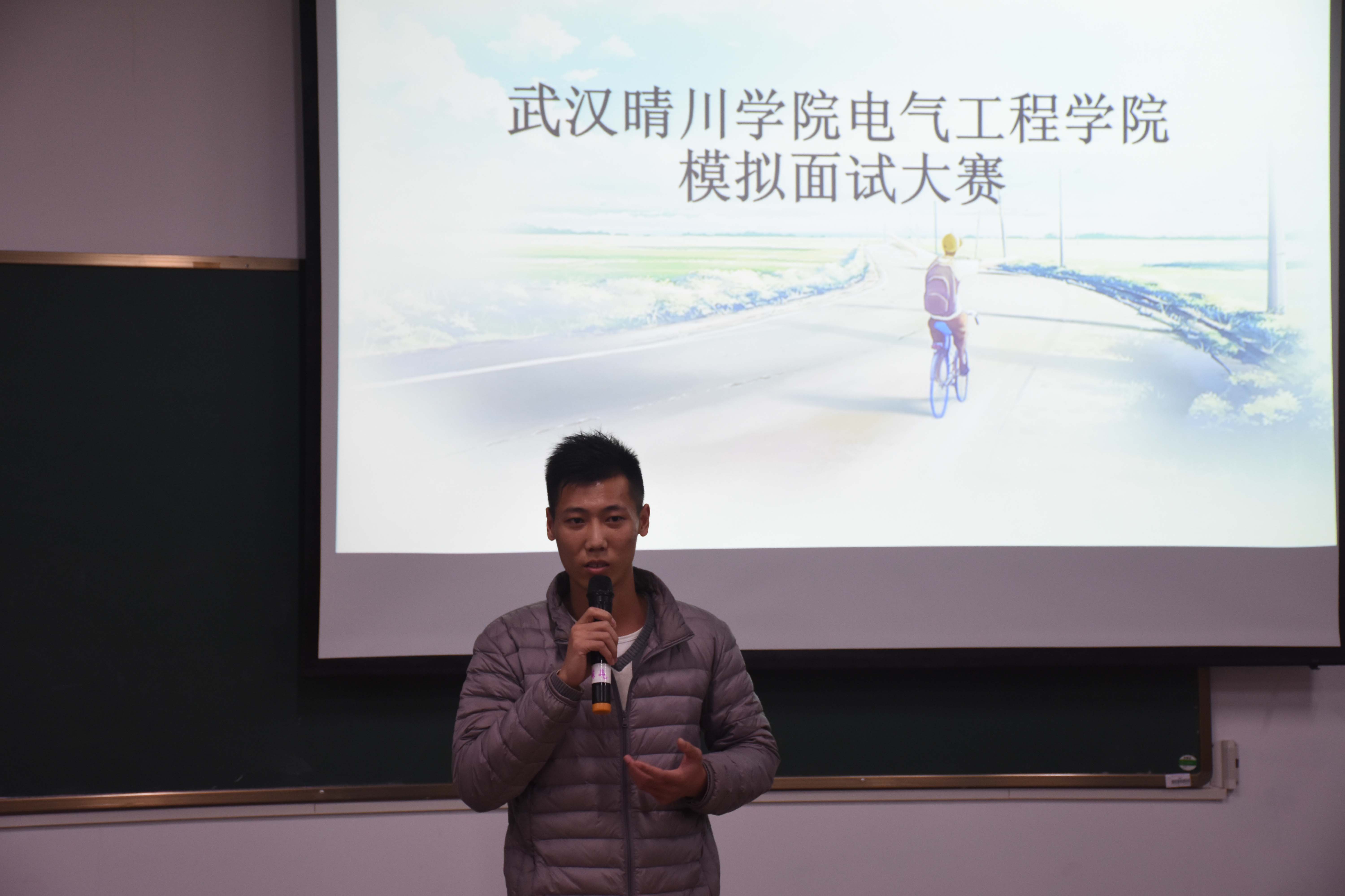 电气工程学院院长助理张洪华老师、电气实验室主任苏韬老师、副院长余胜老师以及毕业班辅导员杨帆老师、刘文泽老师,OK138太阳集团宣传部代表等出席模拟面试大赛现场,本场面试大赛由余胜老师主持。