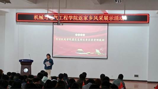 新时代的青年学子利用暑假力所能及参与基层治理日常活动,充分感受家乡的变化,将理论付诸于实践,为家乡建设作贡献,为群众做好事、办实事、解难事,让青春灿若夏花,让梦想生根发芽。机电学院2023年寒假“返家乡”社会实践活动顺利进行,我院青年学子积极响应新时代号召,在服务家乡、服务人民的过程中学思践悟,并于2024年3月13日下午在综二105开展了“返家乡社会实践风采展示”。参加此次活动的老师有机电学院党总支书记张丽芳,团总支书记李兰芳,辅导员谌文韬、汪盼、申卓、周培荣、张爽子、刘洋马昊等老师。本次活动的主持人为张旭。