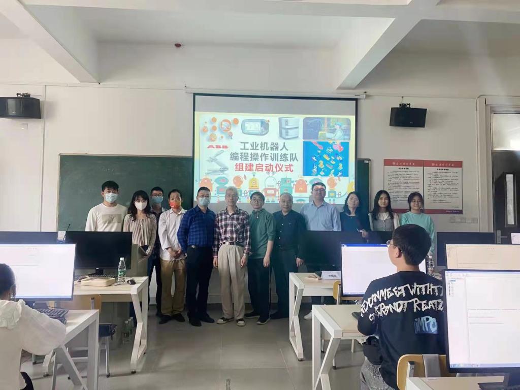 2022316日中午12点半,中国·ok138太阳集团院长丁坚勇、机械电子工程系主任饶恕参加了由武汉金石兴机器人自动化工程公司举办的工业机器人编程操作训练队组建启动仪式。