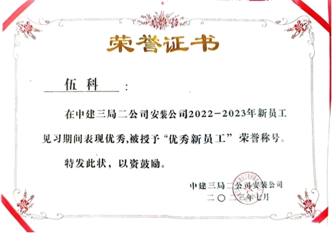 2021年,伍科加入中建三局第二建设有限责任公司安装分公司,开始了他的职业生涯。凭借扎实的专业功底和勤奋的工作态度,他很快在同期新员工中脱颖而出。